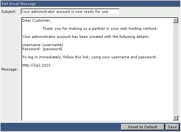 After making changes, click the "Save." button. You may restore the message back to its original content by clicking the "Reset to Default" button.